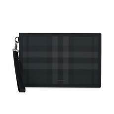 버버리 남성 체크 로고 차콜 클러치백 8070205
