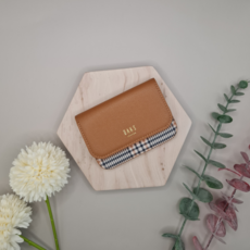 [닥스] 매쉬 브라운 체크패턴 가죽콤비 3단 여성 장지갑