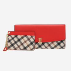 DAKS 레드 체크 가죽 선물 행운 여성 장지갑