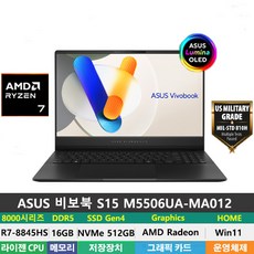 (당일발송) ASUS 비보북S 15 OLED M5506UA-MA012 라이젠7-8845HS.DDR5 16GB/NVMe 512GB/Win11HOME/400NIT/3K/AI, WIN11 Home, 16GB, 512GB, 블랙